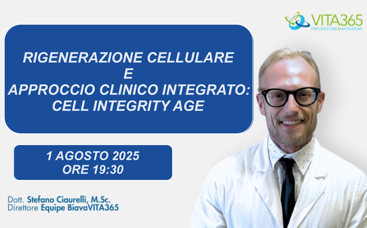 Nel 6’ appuntamento del 2025, il Dott. Stefano Ciaurelli, direttore dell’Equipe BiavaVITA365, presenterà “Rigenerazione cellulare e approccio clinico integrato: Cell Integrity Age”. Nella sessione verrà approfondita la composizione e gli importantissimi effetti sulla salute di Cell Integrity Age.